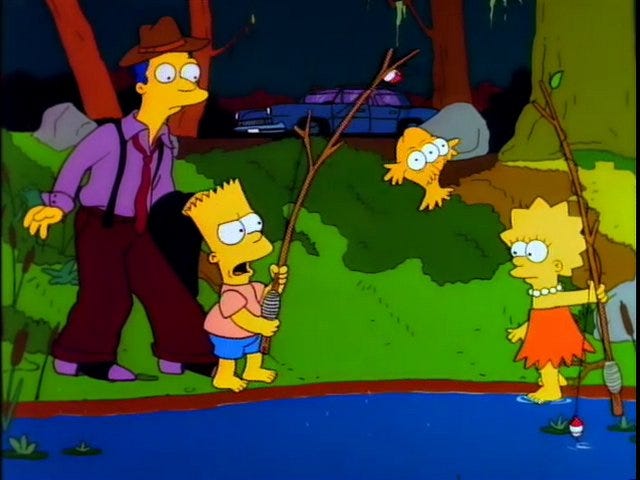 Bart and Lisa find themselves by the old fishing hole, when Dave Shutton, investigative reporter pulls up his car.